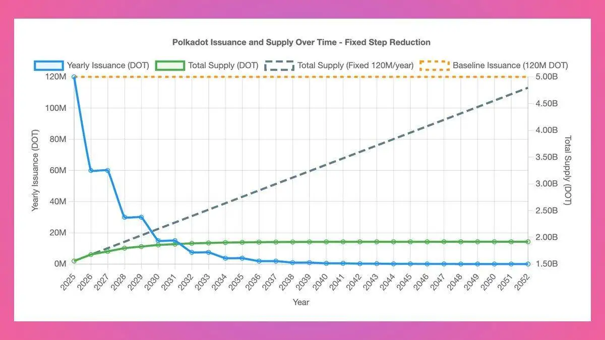 Polkadot DAO通过提案设定DOT供应上限21亿枚 2025-09-15 09:11:18 10 Polkadot DAO于9月15日通过第1710号公投提案,以81%支持率将DOT代币总供应量上限设定为21亿枚。该提案终止原有每年增发1.2亿枚DOT的无限供应机制,转而采用每两年递减新币发行量的通胀控制模式。 上一篇:Native Markets成功中标Hyperliquid USDH代币发行计划 下一篇:巨鲸/机构地址持有SOL浮盈2.8亿美元,持续向币安转移资产 相关文章 Aspecta 公布代币 ASP 总供应量 10 亿枚 币安设定BAS Pre-TGE活动参与门槛为213 Alpha积分 USDe供应量突破60亿枚,刷新历史纪录 Ethena旗下稳定币USDe供应量突破100亿枚 OKX交易所完成6526万枚OKB回购销毁 总供应量锁定2100万枚 Lista DAO通过LIP-021提案 将销毁2亿枚LISTA代币 新地址大额增持PEPE,持仓总量达2186亿枚 比特币有上限吗?2100万枚咋分配? MANTRA链启动ERC20 OM迁移投票 设定8%通胀率及25亿代币上限 Bitlayer发布BTR代币经济学方案 总供应量10亿枚 Anoma公布代币经济学分配方案:总供应量100亿枚 Polkadot DAO通过提案设定DOT供应上限21亿枚