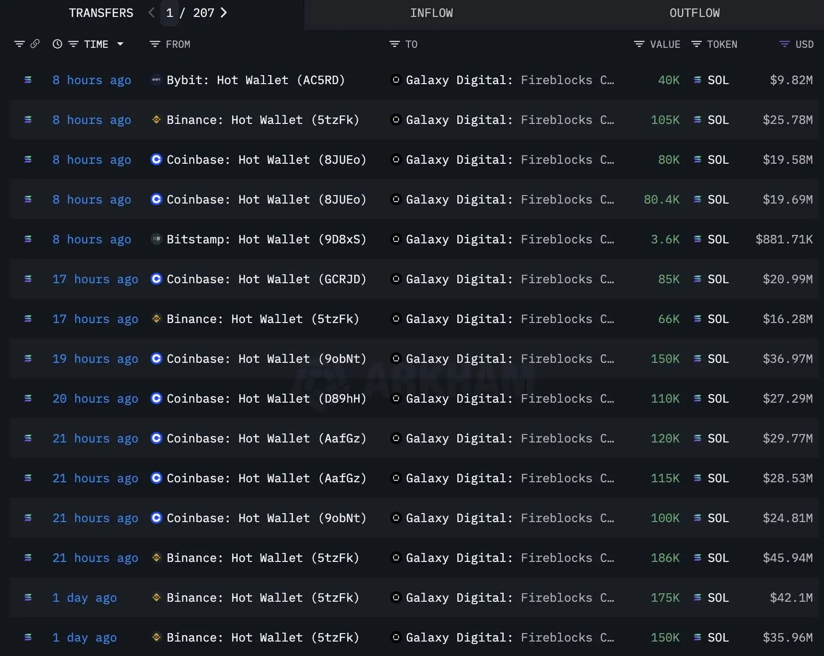Galaxy Digital五日增持650万枚SOL 总投入达15.5亿美元 2025-09-15 09:10:01 11 链上分析平台Lookonchain监测显示,Galaxy Digital于9月15日24小时内增持120万枚SOL,按当前市价折合3.06亿美元;该机构近5日已累计增持650万枚SOL,总投入资金达15.5亿美元。 上一篇:某鲸鱼向Hyperliquid存入500万美元USDC并建立多个高杠杆多头头寸 下一篇:SOL巨鲸持续向Binance转移质押代币 套现1482万美元 相关文章 贝莱德旗下ETHA增持超百万ETH,总持仓估值达102.2亿美元 Nano Labs增持BNB至12.8万枚,持仓总值达1.08亿美元 Ether Machine增持ETH总量达33.4万枚 Dynamix启动15亿美元ETH配置计划 萨尔瓦多增持比特币至6,256.18枚,总价值达7.085亿美元 DeFi Dev增持11万枚SOL,持仓总值达2.09亿美元 机构投资者增持近5万枚ETH,持仓总价值逾9亿美元 某巨鲸或机构增持近6万枚ETH,总持仓达29.3万枚价值12.4亿美元 BitMine再度增持28,650枚ETH,总持仓达117.4万枚 某巨鲸增持11万枚LINK,持仓总量达104.4万枚 某鲸鱼地址增持11.1万枚LINK 总持仓达104万枚 BitMine本周斥资8.1亿美元增持ETH,总储备达189.3万枚 Galaxy Digital五日增持650万枚SOL 总投入达15.5亿美元