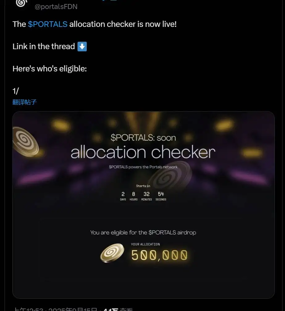 Portals基金会推出空投检查工具 助力Web3游戏创作平台发展 2025-09-15 10:53:05 13 Web3游戏创作平台Portals基金会在9月15日宣布推出空投检查工具。 上一篇:Upbit将于9月15日上线AVNT韩元/BTC/USDT交易对 下一篇:链上分析师监测:大量WLFI代币从Bitget转出,部分流入币安 相关文章 以太基金会启动生态系统发展新战略框架 Towns Protocol上线空投资格检查工具 区块链Somnia基金会在X平台开通官方账号 直播交易平台Sidekick成立基金会并推出原生代币K,公布代币分配方案及锁仓机制 Camp Network基金会推出CAMP代币空投资格检查工具 ADI基金会推出ADI Chain测试网 助力阿联酋稳定币项目 Mira基金会正式成立 推动去中心化AI基础设施发展 以太坊社区基金会推出BETH代币化销毁证明系统 Holoworld基金会成立并推出HOLO代币 助力AI原生应用生态发展 CoinP基金会与SUI世纪基金会达成战略合作 共推Web3发展 Portals基金会推出空投检查工具 助力Web3游戏创作平台发展 以太坊基金会组建DAI团队推动链上AI发展
