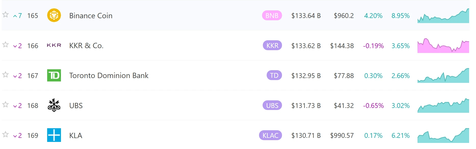 BNB市值突破1330亿美元,超越瑞银集团跃居全球资产第165位 2025-09-17 11:59:07 17 9月17日,BNB价格一度升至960美元,推动其市值突破1330亿美元,刷新历史高位。该市值已超越瑞银集团(UBS),跃居全球资产市值排名第165位。 上一篇:BNB合约持仓量创新高 币安Bybit分列前二 下一篇:新建钱包地址三日内从币安、Bitget提币6,748枚ETH 相关文章 以太坊市值达3616.8亿美元,超越SAP位列全球资产第35位 比特币市值达2.36万亿美元 超越亚马逊位列全球资产第五 以太坊市值超越白银,位列全球资产第34名 以太坊市值超越强生公司,全球资产市值排名升至第30位 以太坊市值达4320亿美元,超越Costco位列全球资产第29位 XRP市值超越麦当劳,位列全球资产第77位 ETH市值突破5200亿美元跃居全球第25位 BNB市值超越劳斯莱斯控股公司,位列全球资产市值第189位 OKB价格创新高,市值突破50亿美元跃居加密货币第37位 XRP价格突破3美元创历史新高 市值达1814亿美元位列全球第107位 BNB市值突破1330亿美元,超越瑞银集团跃居全球资产第165位 BNB市值创新高,超越英特尔位列全球资产第156位