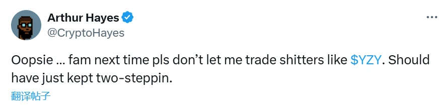 BitMEX联合创始人Arthur Hayes公开悔意:称YZY代币为劣质币种 2025-08-21 15:01:49 24 BitMEX联合创始人Arthur Hayes于8月21日通过社交媒体公开表达对参与YZY代币交易的悔意,并直言"下次请勿让我接触此类劣质币种,应坚持原有投资节奏"。 上一篇:美联储会议纪要强化通胀担忧 市场聚焦鲍威尔讲话 下一篇:BTFS官方解读开放节点与SP节点区别 相关文章 WLFI联合创始人称多家上市公司正评估将WLFI代币纳入储备资产 BitMEX联合创始人多渠道购入150.5万美元ENA代币 Sky联合创始人Rune利用质押奖励回购SKY代币 Sky联合创始人Rune回购2453万枚SKY代币并完成质押 币安创始人CZ称当前仍存大量机遇 Sky联合创始人Rune Kek通过出售ENA代币回购SKY BitMEX联合创始人Arthur Hayes公开悔意:称YZY代币为劣质币种 BitMEX联合创始人Arthur Hayes以101万美元购入ENA代币 BitMEX联合创始人Hayes 8小时内购入101万美元ENA代币 Monad联合创始人公布链上原生Gas代币供应量为1000亿枚 Tether联合创始人新代币STBL交易者关联性曝光,获利超千万美元 BitMEX联合创始人被指通过场外交易减持ETHFI代币