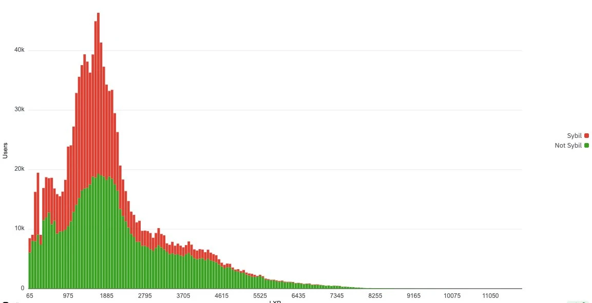 Nansen分析:Linea LXP激励计划中Sybil账户数量显著异常 2025-08-28 11:09:18 25 Nansen于8月28日发布的分析数据显示,Linea LXP激励计划中检测到大量Sybil(女巫攻击)账户。数据显示,在积分分布峰值区间(1000-2000积分)内,红色标记的Sybil账户数量显著超过绿色标记的正常账户。 上一篇:The Sandbox联合创始人退出日常运营 战略重心转向Web3领域 下一篇:私钥为何不能泄露?非对称加密如何护资产? 相关文章 7月3日中山公用回应稳定币牌照申请计划 中金公司分析稳定币普及对支付体系影响 中国三三传媒计划申请香港稳定币牌照 WEEX交易所推出PUMP生态新用户激励计划 SharpLink增持以太坊并全部质押,集中度指标显著上升 Base链遭遇33分钟网络中断,团队完成事后分析并计划公开应对方案 链上分析平台监测显示两巨鲸向中心化交易所大额转账 加密货币市场监测:巨鲸账户24小时内大额资金流动显著 BTCS推出区块链示股息及股东激励计划 Nansen分析:Linea LXP激励计划中Sybil账户数量显著异常 矿机风扇异常与转速过高问题分析及处理策略 红海海底电缆中断引发多国网络异常 微软启用备用方案保障服务