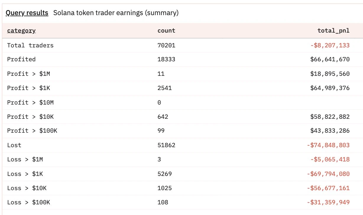 Solana链上YZY代币交易亏损情况分析 2025-08-28 12:28:17 23 据Bubblemaps监测,Solana链上YZY代币自发性以来吸引70,201个地址参与交易,其中73.9%(51,862个)出现亏损,累计亏损7484.8万美元。分层统计显示:5,269个地址亏损超1千美元(合计6979.4万美元);1,025个地址亏损超1万美元(合计5667.7万美元);108个地址亏损超10万美元(合计3136万美元);3个地址亏损超100万美元(合计506.5万美元)。项目整体呈现负收益状态,净亏损达820.7万美元。 上一篇:近30小时4个新地址接收78,891枚ETH,或关联Bitmine 下一篇:菲律宾参议员提议将国家预算迁移至区块链平台 相关文章 链上分析师监测到大额加密货币抛售及盈利情况 链上分析师监测到大额ETH兑换WBTC交易 链上数据揭示大额YZY代币交易及浮亏情况 Solana链上投资者两笔YZY代币交易致亏损10.6万美元 链上分析师监测显示XPL杠杆交易员盈亏分化 链上分析师监测某地址大额ETH转账及持仓情况 Solana链上YZY代币交易亏损情况分析 链上数据揭示0xa523地址大额做多ETH及亏损情况 链上分析师监测ETH大额建仓及历史交易回报 PUMP代币反弹110% 巨鲸做多获利及杠杆亏损情况分析 链上分析师监测到智能钱建仓HYPE代币 链上分析师监测Ethena项目地址大额ENA代币转移及交易所充值情况