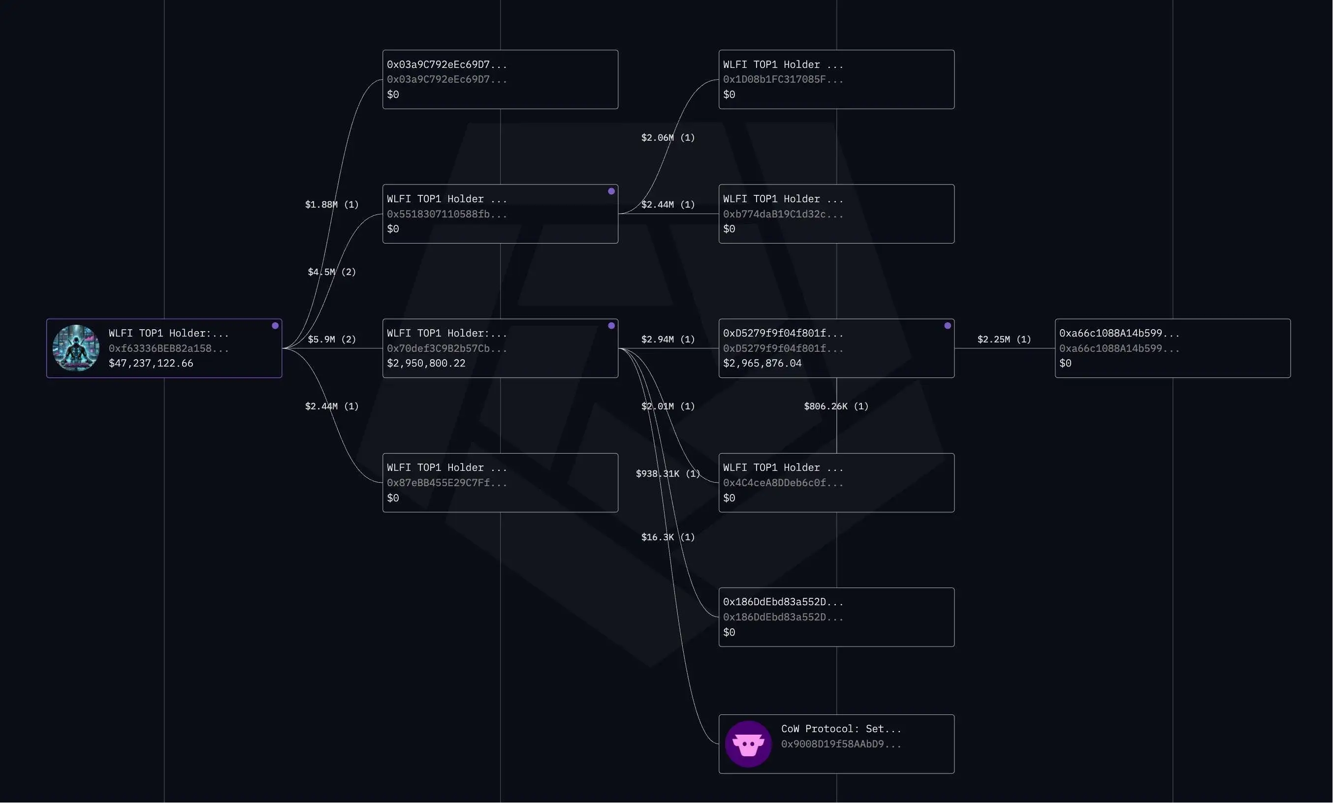 WLFI最大持仓者分散转移近8000万枚代币,关联地址涉XPL套保事件参与者 2025-09-05 17:52:20 21 链上分析师Ai勋(@ai_9684xtpa)监测显示,WLFI最大持仓地址moonmanifest.eth于9月5日启动大规模资产分散操作,过去18小时内将7954万枚WLFI(约合1469万美元)分批转移至9个独立地址。其中moonmanifestphilanthropy.eth地址曾于3日前发生小额减持,该地址被标记与XPL狙击套保事件核心参与者TechnoRevenant存在关联,当前持有WLFI总量的1%,其TGE解锁份额达2亿枚代币。 上一篇:HackQuest全资收购BuidlBox拓展全球开发者生态 下一篇:20万枚ENS代币解锁后转入Binance及Galaxy Digital 相关文章 某地址半小时内投入818000美元购入2034万枚ANI代币 某加密鲸鱼地址转移1340万枚ENA代币,价值726万美元 Ethena项目方关联地址5日内向交易所转移1.5亿ENA代币 TRUMP代币两大持仓地址持续增持,逼近榜首持仓量 以太坊基金会转移1000枚ETH至关联地址 持仓总量达2700枚 Hex Trust疑似关联地址从币安提取238万枚ENA代币 以太坊基金会关联地址抛售近1700枚ETH,历史持仓曝光 WLFI前十大公募参与者累计投入7308万美元,TOP1地址持仓超10亿枚 链上数据显示GSR关联地址参与WLFI代币融资 AIO代币异常转移事件 WLFI最大持仓者分散转移近8000万枚代币,关联地址涉XPL套保事件参与者 Ethna Labs地址向币安转移500万枚ENA代币