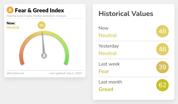 加密货币恐慌与贪婪指数连续多日维持中性区间 2025-09-06 14:49:06 15 加密货币恐慌与贪婪指数9月6日报48,连续多日维持在中性区间,该数据由Alternative.me监测显示。 上一篇:Collector Crypt代币CARDS市值突破1.2亿美元,24小时涨幅达24.2% 下一篇:2025年加密行业并购交易额预计达过去五年总和 相关文章 加密货币恐慌与贪婪指数升至74,市场情绪维持贪婪区间 加密货币恐惧与贪婪指数连续两日维持贪婪状态 加密货币恐慌与贪婪指数骤降至44 进入恐慌区间 加密货币恐慌与贪婪指数连续两日维持50 市场情绪保持中性 加密货币恐慌与贪婪指数回升至51 市场维持中性状态 加密货币恐慌与贪婪指数报50 市场情绪维持中性状态 加密货币恐慌与贪婪指数回升至中性区间 加密货币恐慌与贪婪指数9月5日降至48,市场情绪维持中性 加密货币恐慌与贪婪指数连续多日维持中性区间 加密市场恐慌与贪婪指数回升至54 仍处中性区间 加密货币恐慌与贪婪指数微跌至52,市场情绪维持中性 加密货币恐慌与贪婪指数小幅攀升至53,市场情绪维持中性