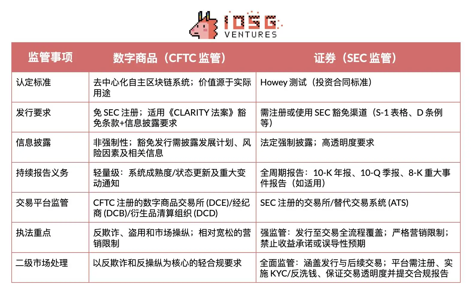 CLARITY法案通过确立区块链系统是否获得SEC认证为“成熟系统”的核心标准,来明确划分数字资产应归类为“数字商品”(CFTC管辖)或证券(SEC管辖)。若系统被认证为成熟,其原生代币可作为数字商品在CFTC监管下交易;其他链上资产则维持原有属性。